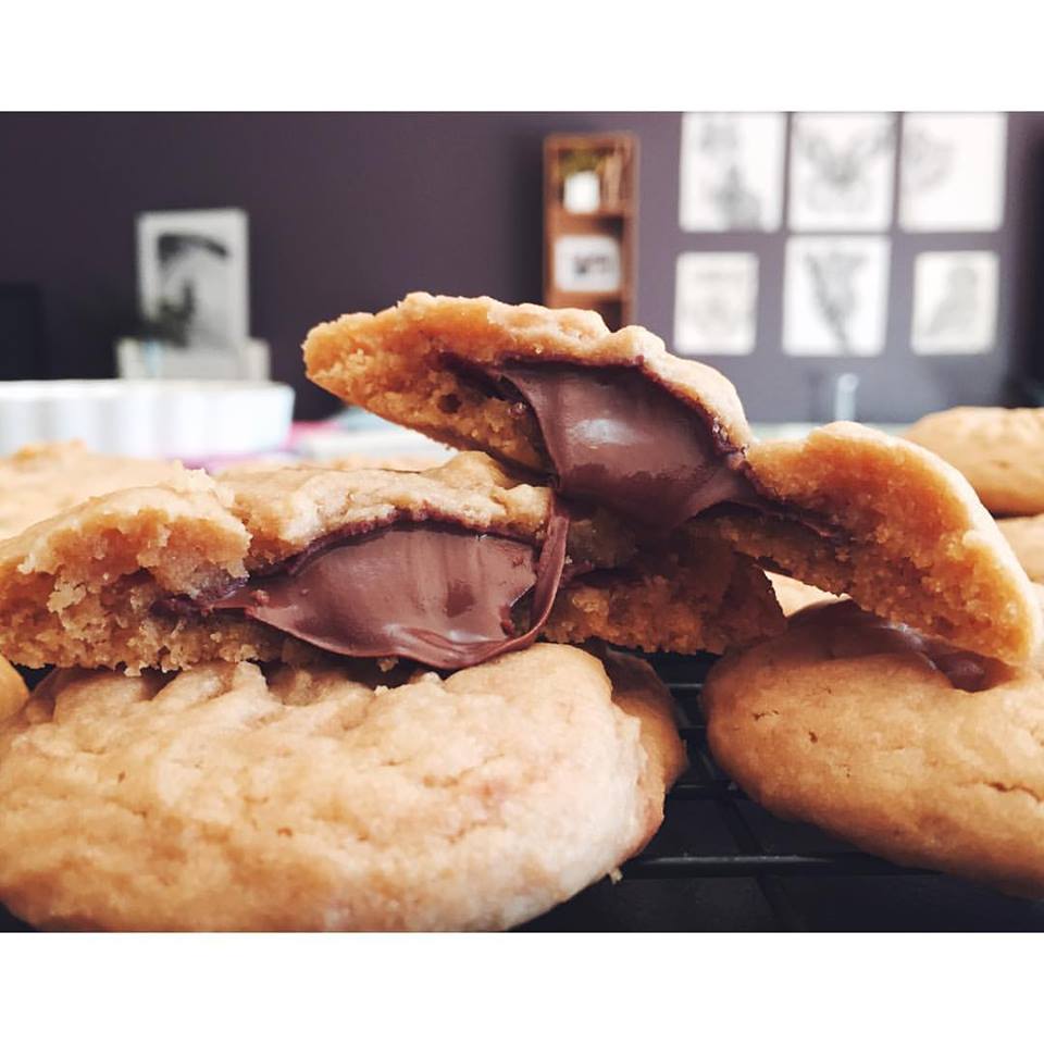 Using my favourite peanut butter cookie recipe, you make the cookie dough as is, and then just dollop some nutella in the middle and you got this crowd pleaser batch of cookies!
