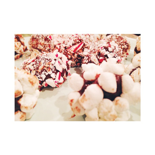 – once you have your chocolate balls all rolled out, you can now decorate them with whatever you like: mini marshmallows, nuts, crushed candy canes, or whatever you find in the pantry.