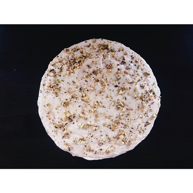 – garnish the cake with the pistachios you made at the very beginning of this journey.